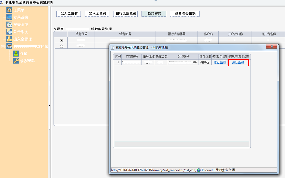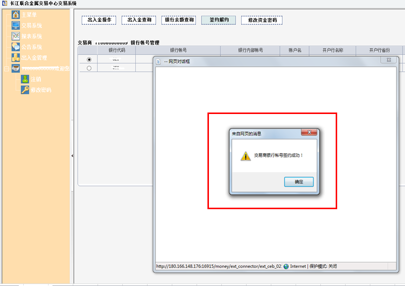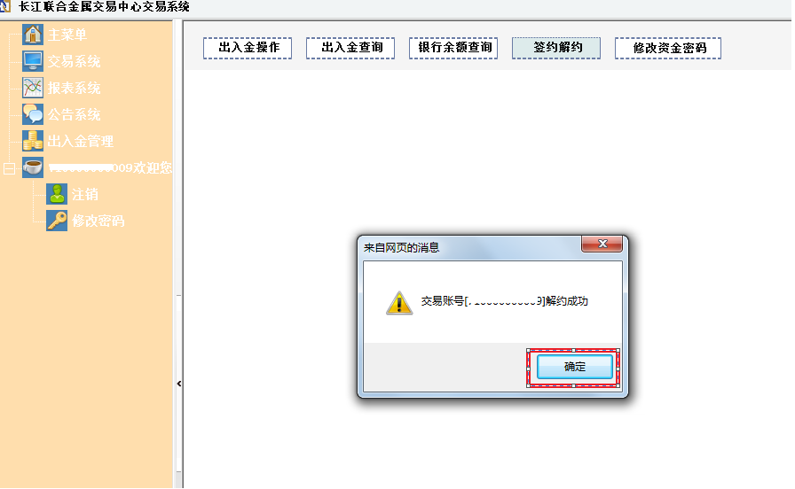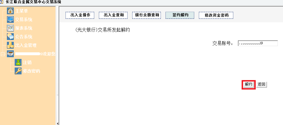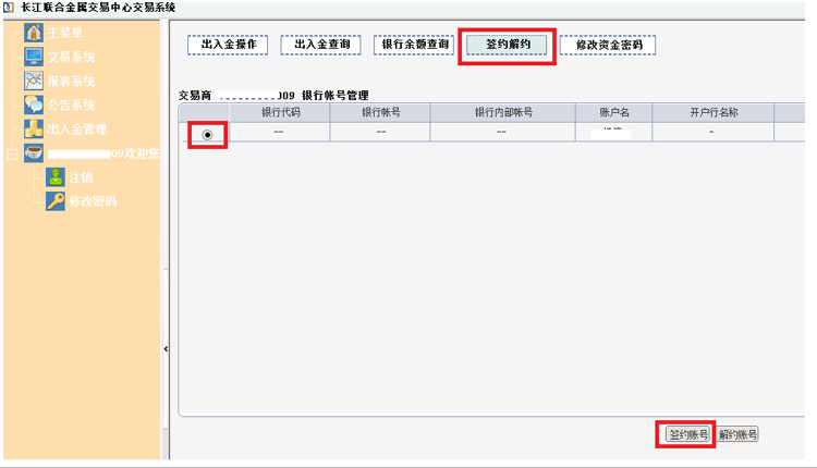 一、登录客户端-出入金管理-签约解约,选中需要解约的账号,点击“解约账号”按钮。