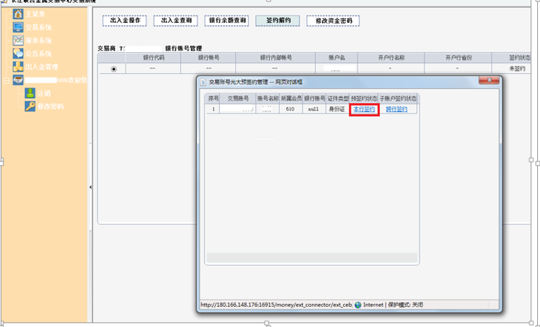 一、登录客户端-出入金管理-签约解约-签约账号。